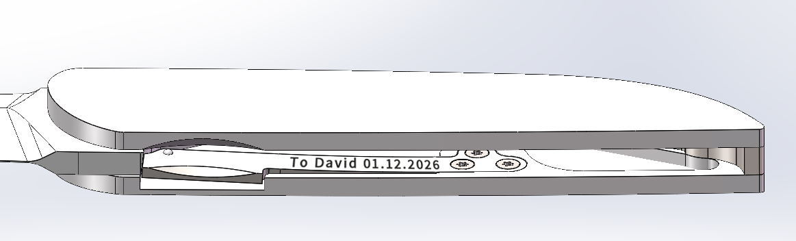 Each knife can be customized with a laser inscription placed on the inner side of the handle, preserving the clean exterior while carrying a message that is uniquely yours.